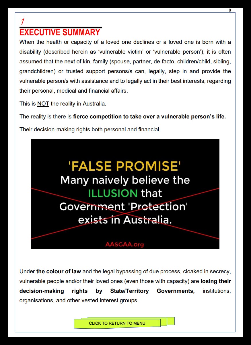 We highlight and inform Australians about how the system can easily victimise and abuse vulnerable people under guardianship and administration. We also discuss how elder abusers, institutional and individual abusers, can navigate the guardianship system and exploit the vulnerable to their advantage.